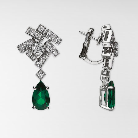 - Boucles d'oreilles avec des diamants et des émeraudes sont la combinaison parfaite. De tels ornements sont rayonnés avec le luxe et la grâce nobles. Ils ne peuvent pas être confondus avec d'autres pierres. Croyez que l'émeraude, comme un diamant, a une énergie puissante. En effet, ce n'est pas sans raison qu'il est considéré comme le patron des mères.