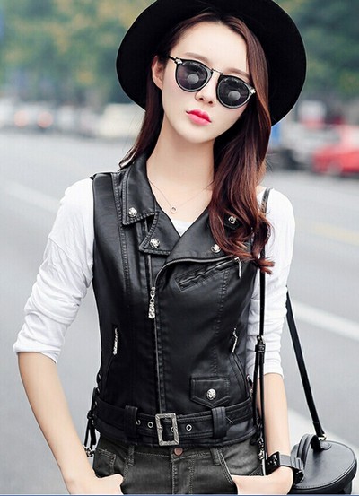 - Gilets en cuir à la mode 2016. Une des variantes sont des gilets courts dans le style d'une veste en cuir sec. Peut être complémentaire à des robes élégantes et décontractées, des pantalons de soie, des jupes et des robes sur le sol. Les modèles allongés sont parfaits pour les pantalons et mini-robes.