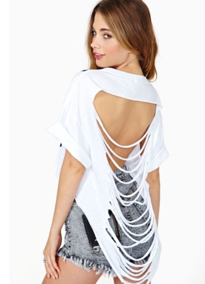 Cependant, l'idée la plus élégante est de couper dans les vêtements. Cette méthode assez simple de décoration et de transformation vous permet de mettre à jour même les objets les plus laids de la garde-robe. Les anciennes chemises et T-shirts, qui, semble-t-il, ne sont plus sujets à récupération peuvent être transformés en une véritable tendance à l'aide de la coupe. Ce décor est également utilisé sur les robes, jeans et jupes. Bien sûr, cette décoration est plus adaptée au style street et disco. Cependant, de nombreuses femmes âgées pourront se sentir beaucoup plus jeunes dans ces nouveaux vêtements.