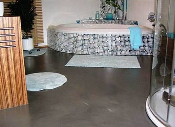 Le sol dans la salle de bain est le choix parfait pour cette pièce. Son utilisation est justifiée dans les pièces à humidité constante, l'avantage étant l'absence de coutures. De tels revêtements diffèrent dans le matériau initial: polyuréthane, ciment-acrylique, époxy.