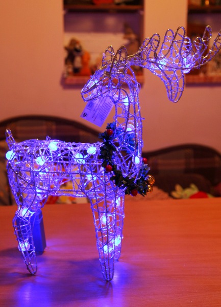 La lampe du Nouvel An "Deer" convient à une personne qui croit en un conte de fées. Si la maison a des enfants, vous avez juste besoin d'attributs liés au conte, au père Noël, à son traîneau et à son fidèle chevreuil.