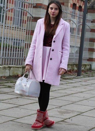 Ramasser la garde-robe pour les bottes roses, il vaut la peine d'envisager leur ombre. Ainsi, les modèles lumineux seront en tout cas l'accent principal de l'image. Par conséquent, il est préférable de porter des vêtements d'extérieur de tons classiques ou foncés. Uggs de couleur rose douce peut être intéressant de compléter un arc romantique avec un manteau de fourrure ou un manteau classique. Dans ce cas, le vêtement extérieur est préférable de choisir la lumière.