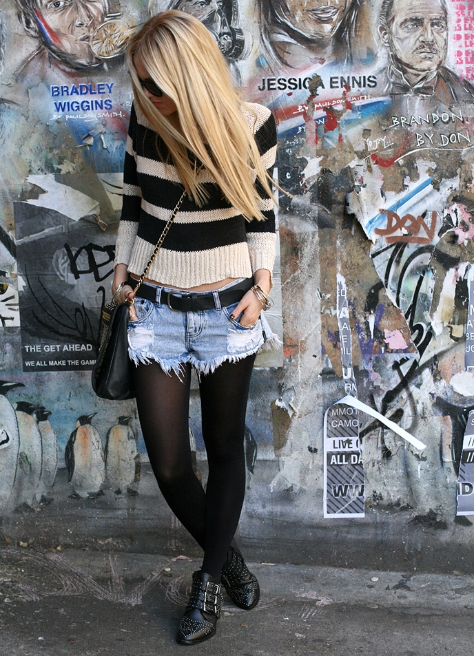 Les créateurs de mode peuvent également combiner des shorts en denim avec des bottes, des baskets, des chaussures classiques ou des chaussures de sport. Les shorts avec des bottes et des chaussures à talons hauts seront sexy et élégants. Il est nécessaire de se laisser guider par une seule règle: plus la longueur du produit est courte, plus les chaussures peuvent être sélectionnées et vice versa.