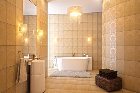Après le séchage du plâtre, le mur est recouvert de cire d'abeille, il complète l'effet optique et améliore la brillance. Épilation à la cire ajoute au mur plus de résistance à l'humidité, de sorte que vous pouvez souvent voir le plâtre vénitien dans la conception de la salle de bain.